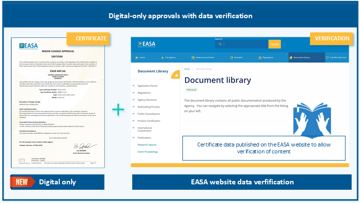 EASA approved certificates and approvals issued digital-only