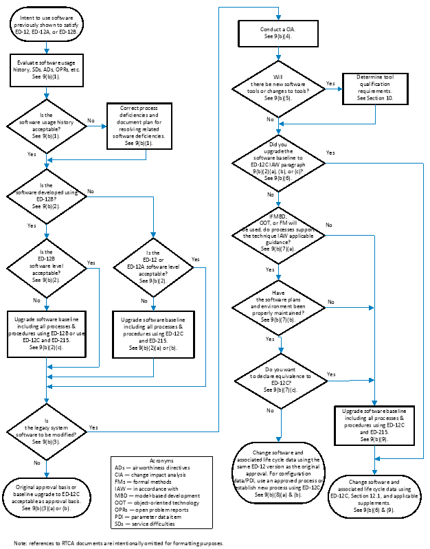 c. If the legacy software was developed using ED-12B/DO-178B, and the software level is not acceptable, the applicant should upgrade the software development baseline, including all processes and procedures (as well as tool qualification processes), using Section 12.1.4 of ED-12B/DO‑178B or ED-12C/DO-178C, and ED-215/DO-330.
