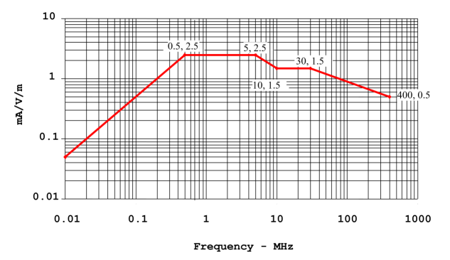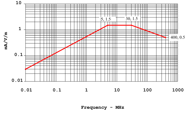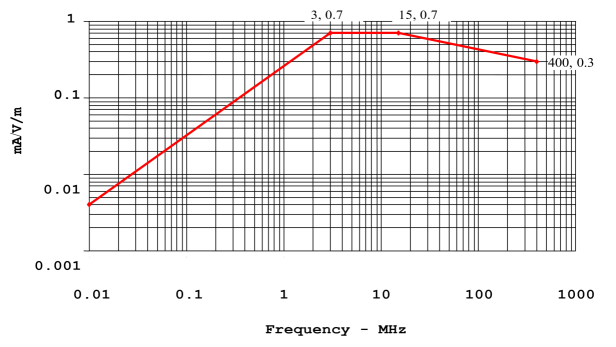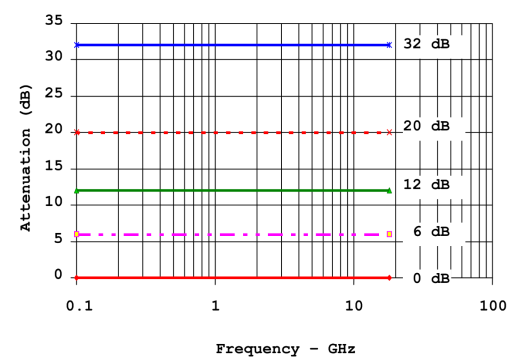 c. Different attenuation values may be appropriate for different frequency ranges. For example, 0 dB attenuation may be used for the frequency range of 100 to 400 MHz, 6 dB attenuation for the frequency range of 400 MHz to 1 GHz, and 12 dB attenuation for the frequency range of 1 to 18 GHz. If an applicant intends to use different attenuation values for various frequency ranges, then they should also provide the supporting rationale.