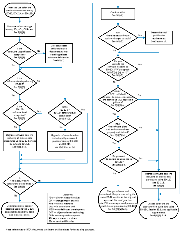 c. If the legacy software was developed using ED-12B/DO-178B, and the software level is not acceptable, the applicant should upgrade the software development baseline, including all processes and procedures (as well as tool qualification processes), using Section 12.1.4 of ED-12B/DO‑178B or ED-12C/DO-178C, and ED-215/DO-330.