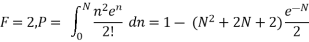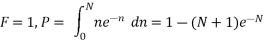 In this case, n can have any value above zero and less than infinity. By considering all values of n from zero to some selected maximum N, the Poisson distribution can be used to find the probability of occurrence of each value of n. Summing all these probabilities gives the cumulative probability P that, for an observed value of F, the expected value is not in excess of N. Thus: