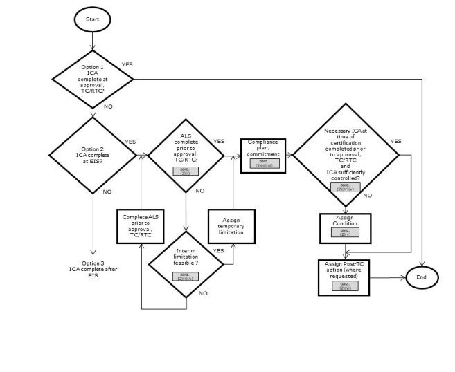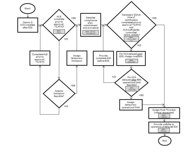 (A) for ICA delayed until entry into service, to assign a condition/notation for the entry into service to be included in the TCDS as a result of these pending issues under the ICA paragraph, as per point (v) of Option 2;