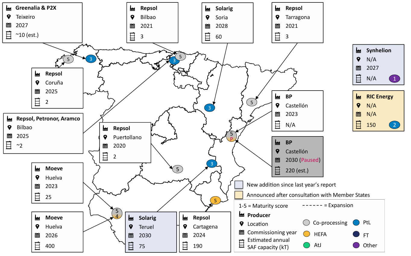 Map of SAF production facilities