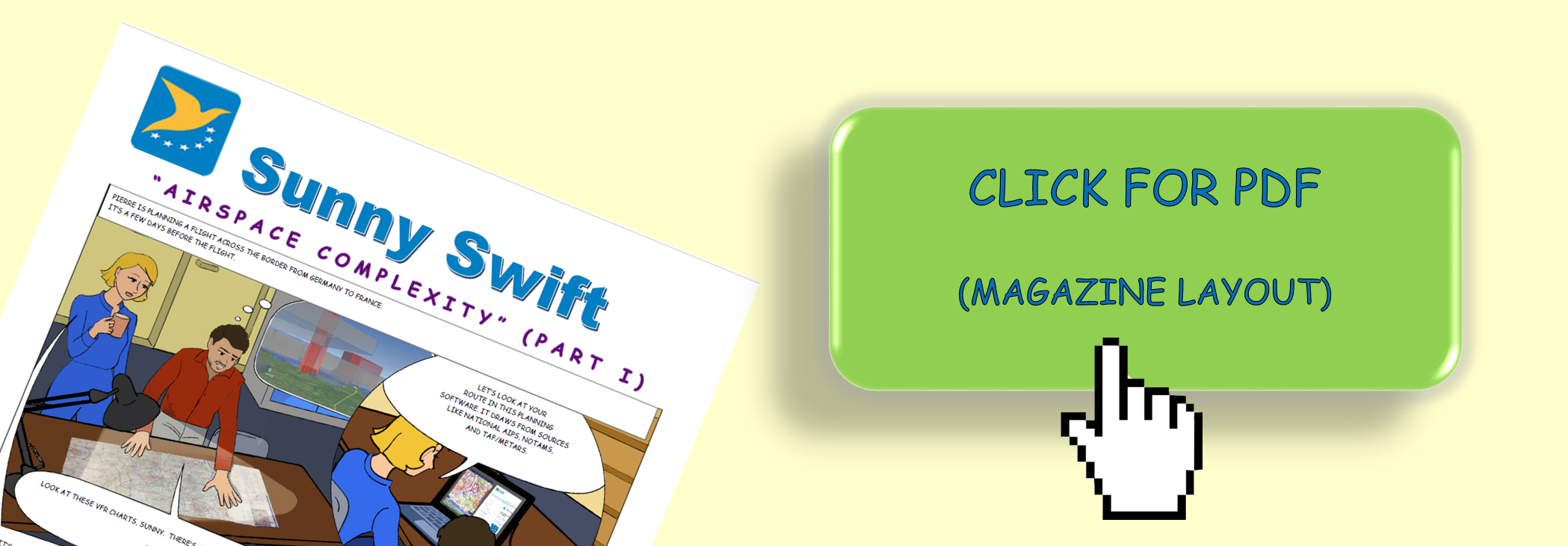 19 Feb 2020 News category Sunny Swift Related domains General Aviation DownloadsRelated ContentRelated NewsGet notified via email alerts View translations Downloads [pdf] EASA Sunny Swift: Flight Instructor - Issue 19 (EN) Translations: bg cs da de el es et fi fr hr hu it IS lt lv nl pl pt ro sk sl sv Related Content Airspace Infringement Flight planning references SKYbrary - Regulation 2150/2005 - Common Rules for the Flexible Use of Airspace (FUA) European AUP/UUP, published each day EUROCONTROL Pilot survey. Sections 5.1. and 5.2: Conclusions and Recommendations 12 Dec 2018 News Sunny Swift: Winter Planning Issue 9 13 Feb 2019 News Sunny Swift: Exchange of experiences Issue 10 08 May 2019 News Sunny Swift: Weather radar information Issue 12 27 Nov 2019 News Sunny Swift: Weather briefing process Issue 17 Join the GA Community! Related News 24 Jan 2025 News Sunny Swift: ADS-L: see and be seen Issue 41 Sunny Swift 27 Feb 2024 News Sunny Swift: Technical occurrence reporting Issue 40 Sunny Swift 03 Aug 2023 News Sunny Swift: Let’s practise using a glass cockpit Issue 39 Sunny Swift 23 Mar 2023 News Sunny Swift: Trim runaway Issue 38 Sunny Swift 16 Dec 2022 News Sunny Swift: Stay within your comfort zone Issue 37 Sunny Swift Get notified via email alerts Stay informed when we publish new content like this. You can always unsubscribe or update these settings later on. Create an account with your email or login Email address ?