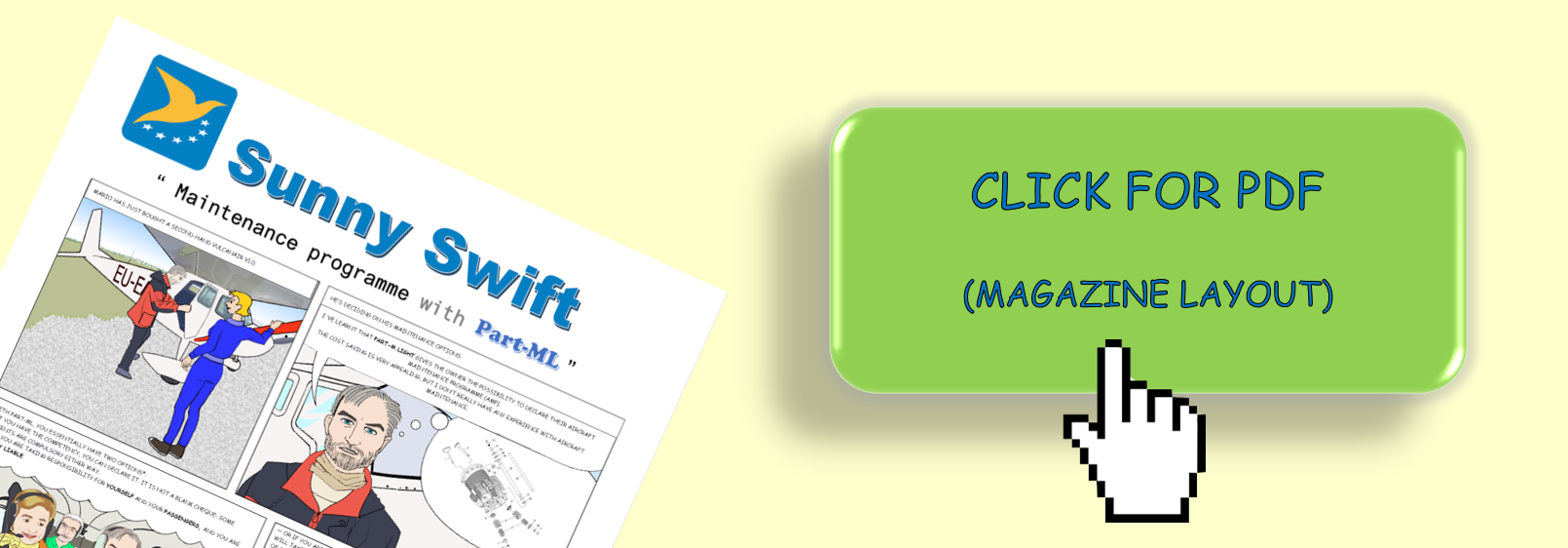20 Jan 2021 News category Sunny Swift Related domains General Aviation DownloadsRelated ContentRelated NewsGet notified via email alerts View translations Related Content Downloads [pdf] EASA Sunny Swift: Maintenance programme with Part-ML (PL) Translations: bg cs da de el es et fi fr hr hu it IS lt lv nl NO pt ro sk sl sv Related Content 10 Sep 2025 Easy Access Rules Popular Easy Access Rules for Continuing Airworthiness Revision from September 2025 — Available in pdf & XML format EASA SIB 2020-05: Aircraft Maintenance Programme under Part-ML EASA GA maintenance leaflet for owners & pilots Advanced Preflight After Maintenance Best Practices Guide for Maintaining Aging General Aviation Airplanes General Aviation MaintenanceRelated Accidents: A Review of Ten Years of NTSB Data FAA AC 20-143 Maintenance of GA engines controls Sunny Swift all issues and subscription Join the GA Community! Related News 24 Jan 2025 News Sunny Swift: ADS-L: see and be seen Issue 41 Sunny Swift 27 Feb 2024 News Sunny Swift: Technical occurrence reporting Issue 40 Sunny Swift 03 Aug 2023 News Sunny Swift: Let’s practise using a glass cockpit Issue 39 Sunny Swift 23 Mar 2023 News Sunny Swift: Trim runaway Issue 38 Sunny Swift 16 Dec 2022 News Sunny Swift: Stay within your comfort zone Issue 37 Sunny Swift Get notified via email alerts Stay informed when we publish new content like this. You can always unsubscribe or update these settings later on. Create an account with your email or login Email address ?