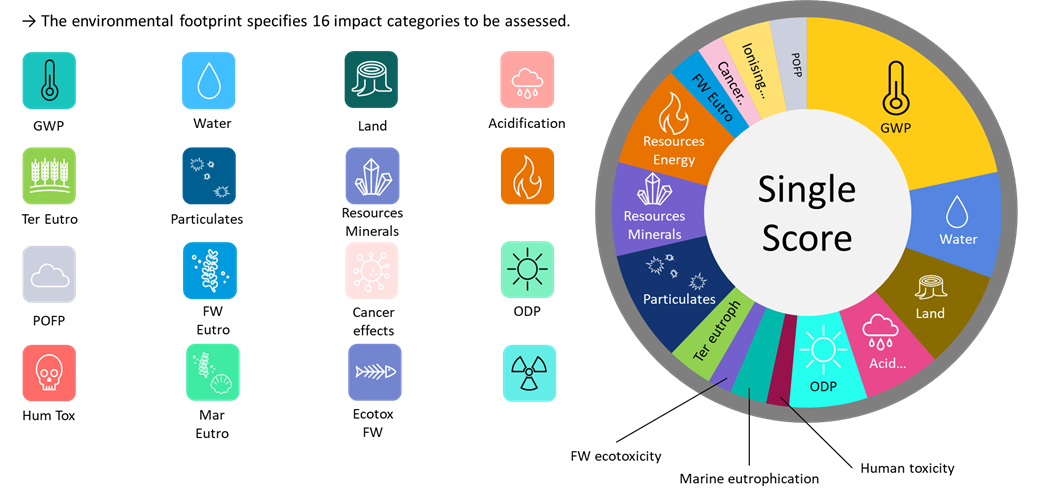 Figure 1: Sixteen environmental impact categories studied under PEF